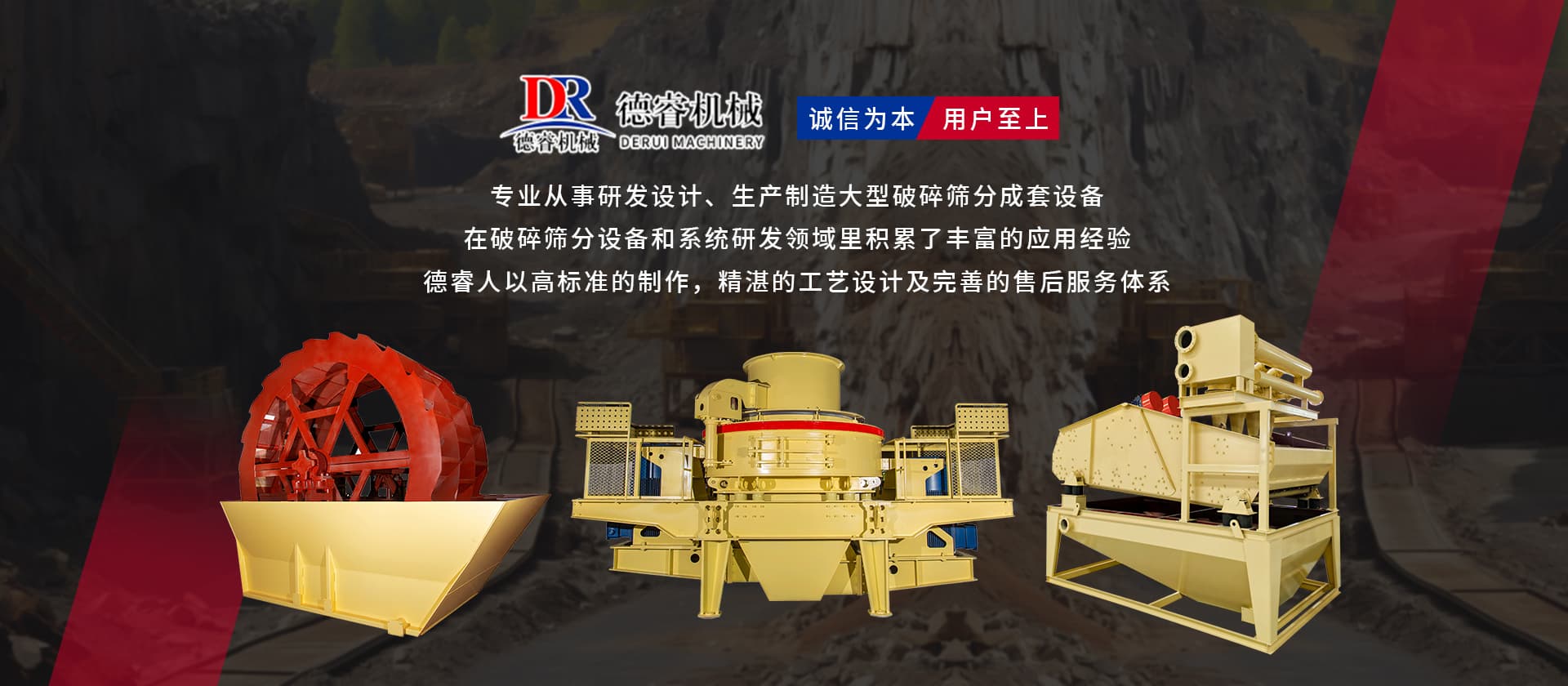 德睿重型機械是從事研發(fā)設計、生產制造大型破碎篩分成套設備的現(xiàn)代高新技術企業(yè)集團,公司總部座落于廣東工業(yè)重鎮(zhèn)、韶關市湞江區(qū)工業(yè)園,有現(xiàn)代化辦工場地、研發(fā)中心和標準化廠房,多種大型機械加工設備10余套,現(xiàn)公司技術人員40余名。 公司在主要城市均設有辦事處,配有豐富實戰(zhàn)經驗的設計工程師,方便為各地客戶現(xiàn)場分析、配置生產線并提供及時、周到的售后服務。 目前產品已覆蓋東南亞、中東、非州、歐州等多個國家和地區(qū),并獲得客戶的好評。公司已成為主要的專業(yè)礦山設備,工業(yè)磨粉、碎石制砂設備的生產和出口基地之一。 “誠信為本,用戶至上”德睿人以高標準的制作,精湛的工藝設計及完善的售后服務體系在破碎篩分設備和系統(tǒng)研發(fā)領域里積累了豐富的應用經驗。借助在破碎行業(yè)的豐富經驗,公司可向客戶提供碎石制砂生產線設計、安裝、調試等交鑰匙工程,同時承接破碎系統(tǒng)的爆破、裝運、破碎等生產運行總承包。
